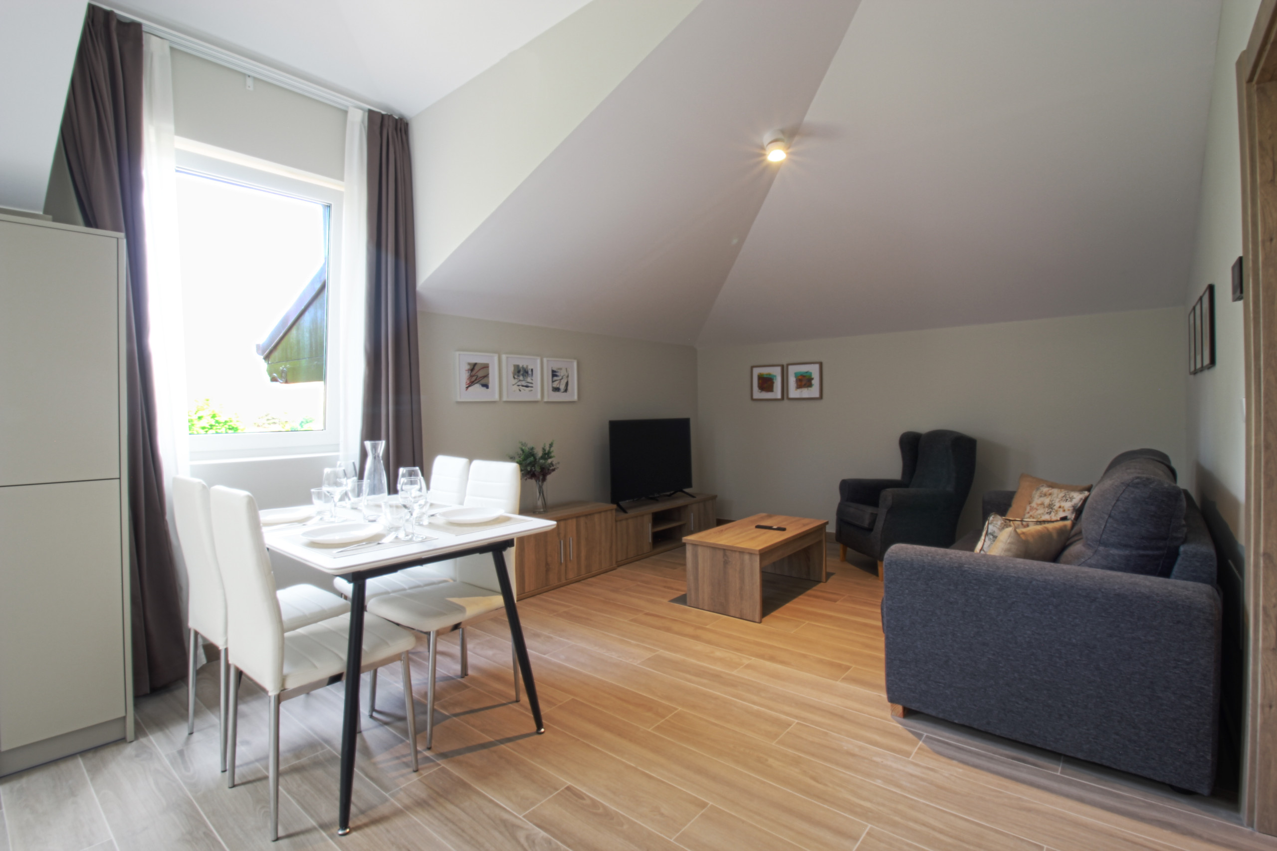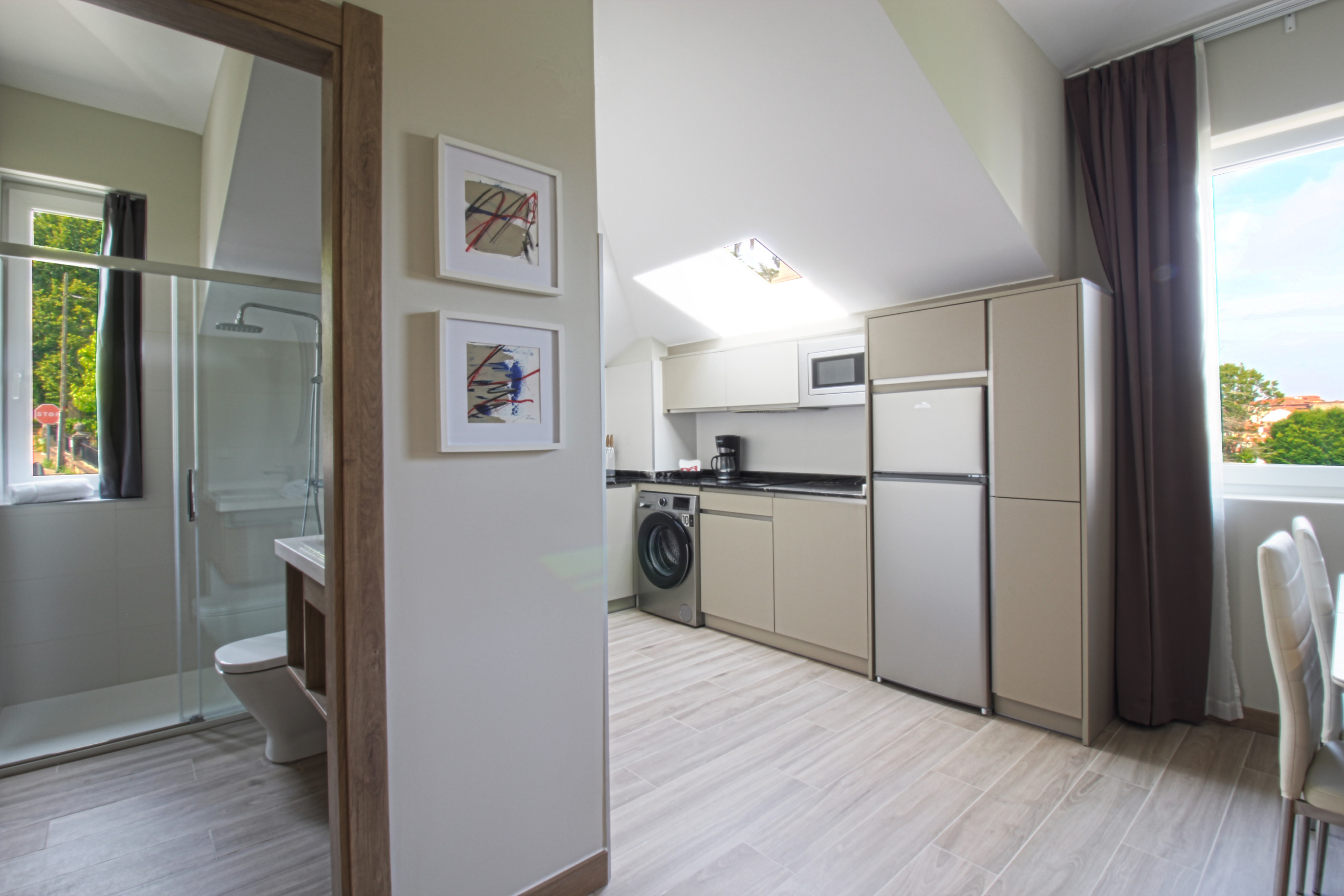La Pontificia es una casa indiana completamente reformada en el centro de Comillas, dividida en tres apartamentos. El tercer apartamento ofrece dos dormitorios y sofá cama. Dispone de cocina moderna contigua al salón comedor, creando un espacio acogedor y funcional. Dispone de dos baños completos con todas las comodidades. Los residentes pueden disfrutar del jardín comunitario y tienen acceso al parking privado. Su ubicación céntrica permite conocer Comillas caminando y disfrutar de su playa.