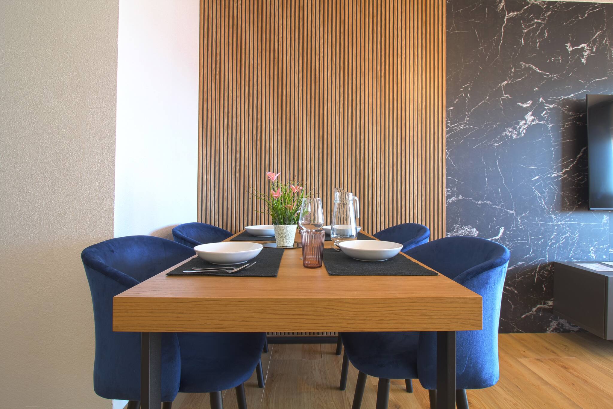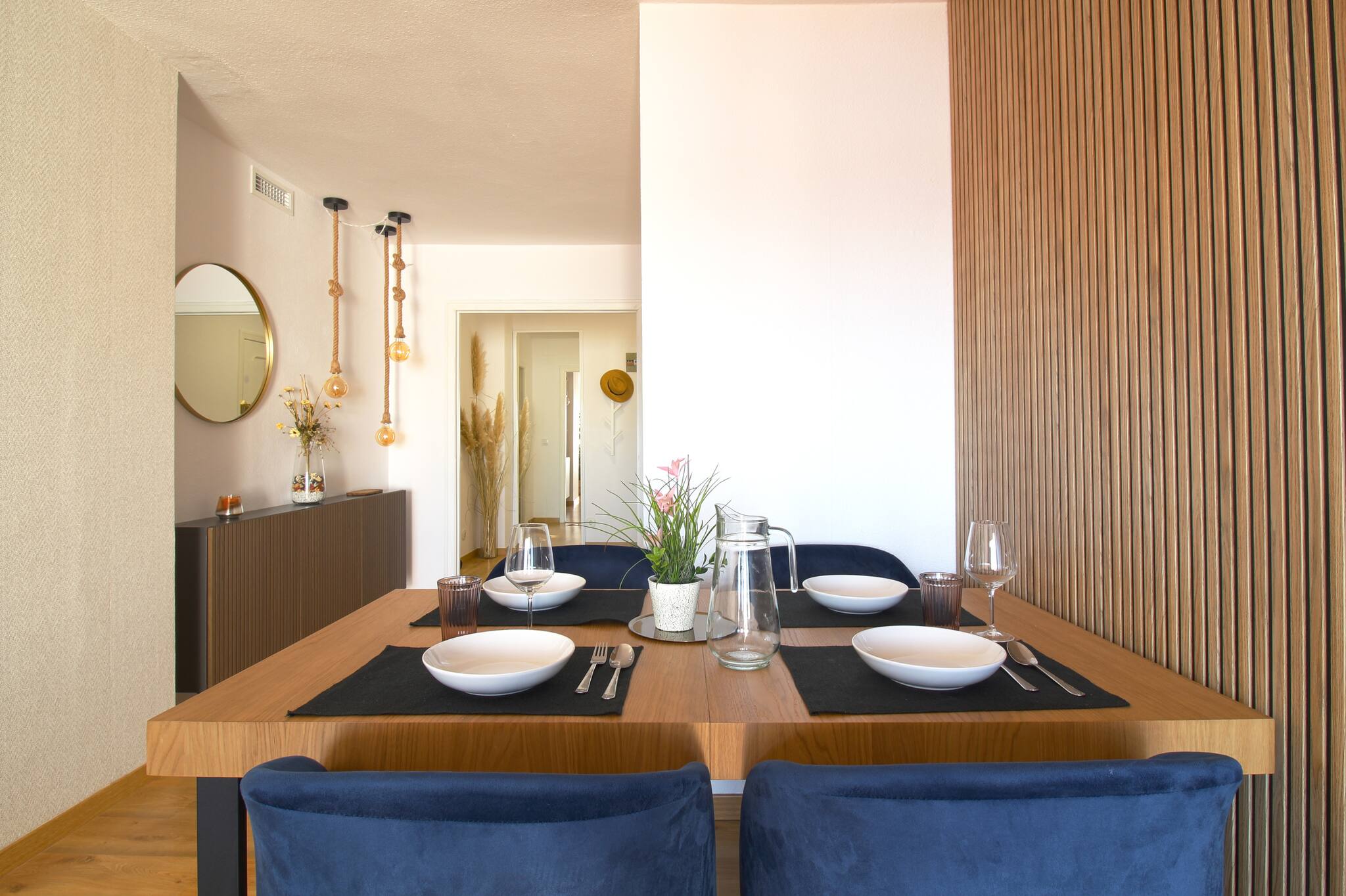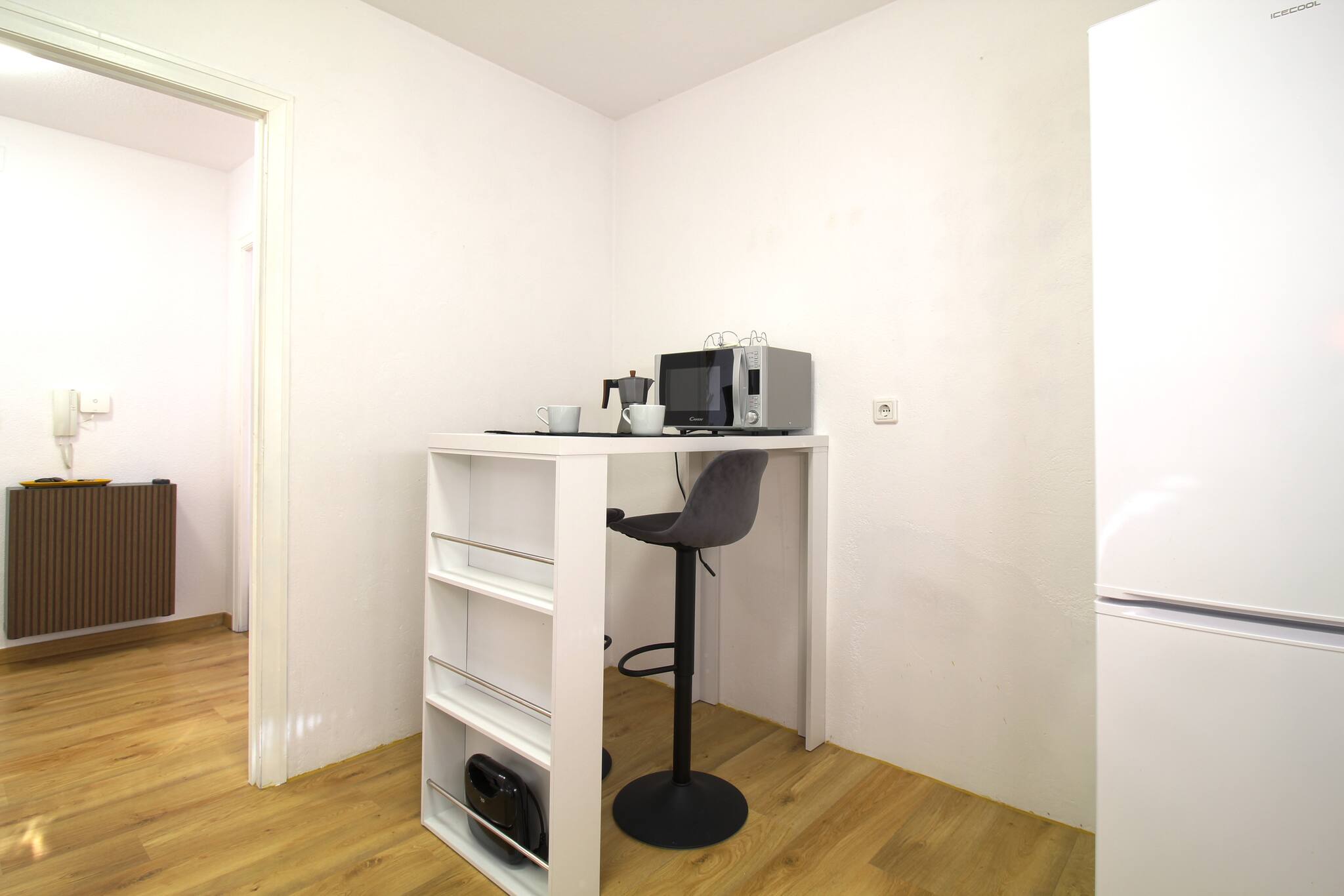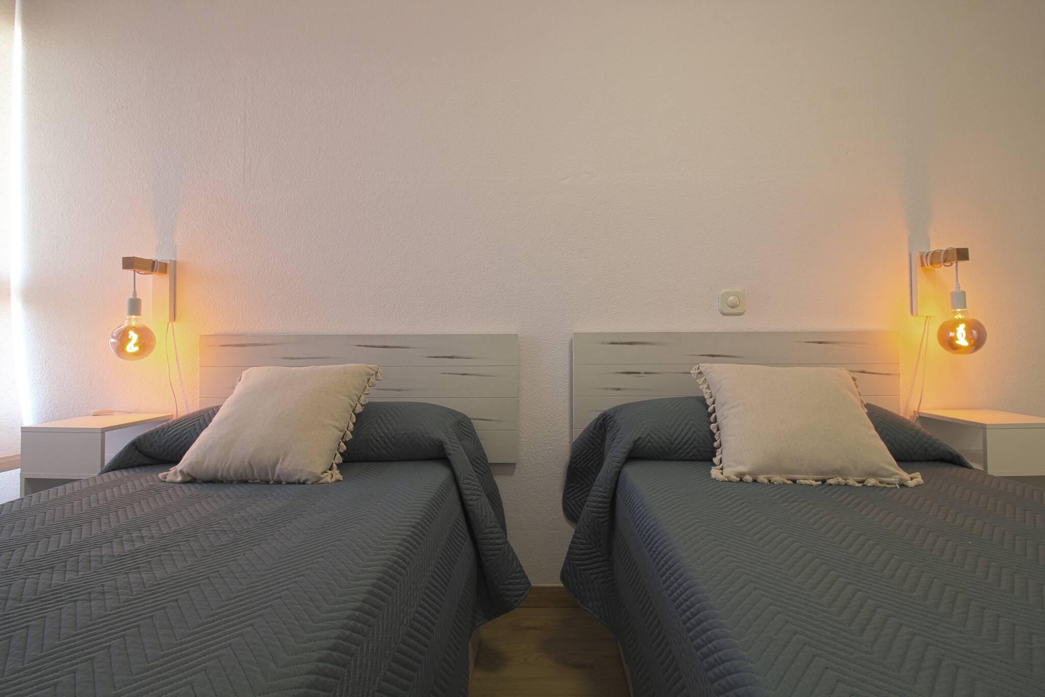 El apartamento es completamente nuevo y está en la planta baja. Tiene un salón comedor, una habitación de matrimonio y un baño. En el salón hay un sofá-cama de cierre italiano con capacidad para dos personas con colchón de gran calidad para un descanso increíble, con medidas 1.40x1.90.