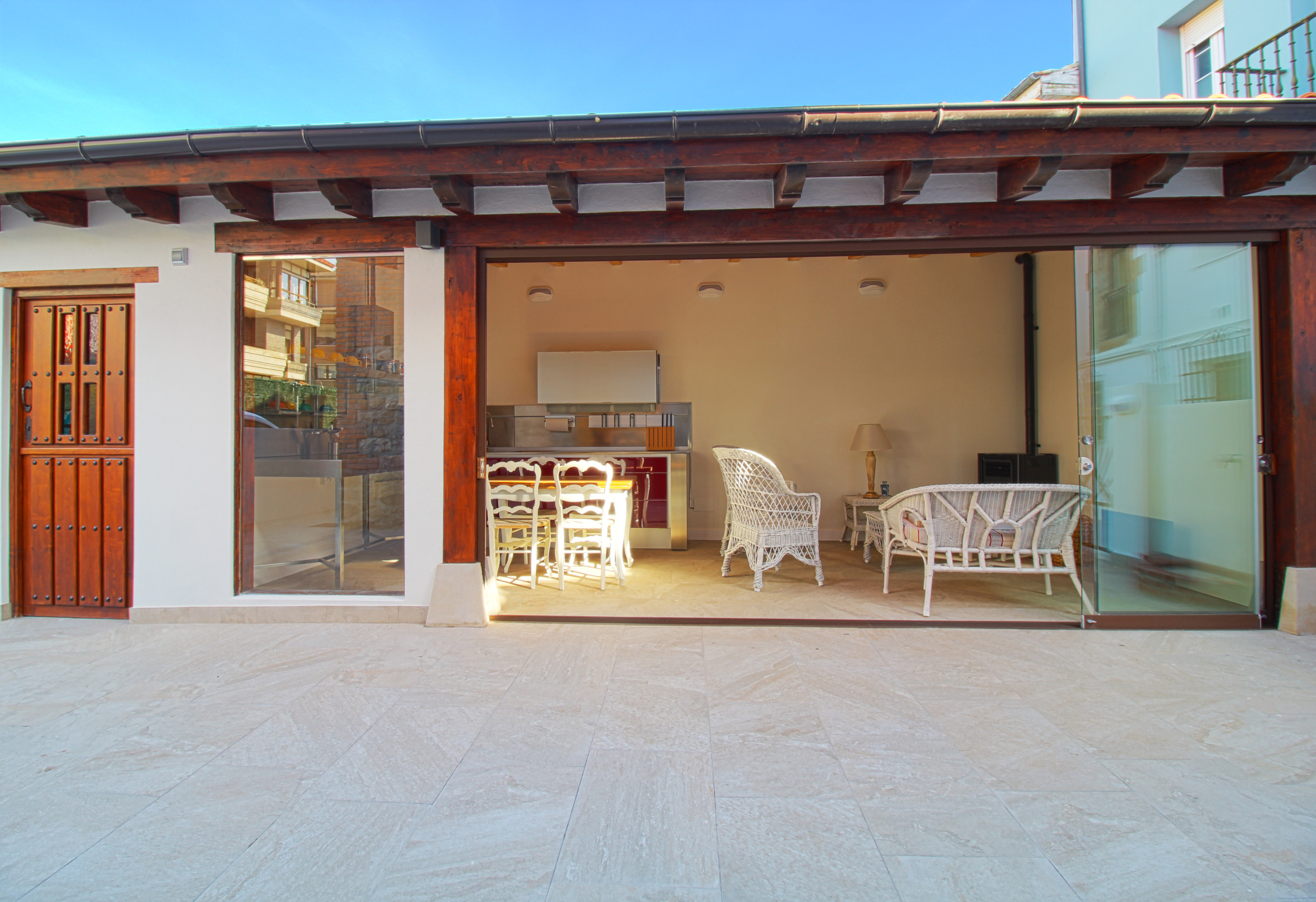 Viento del Norte tiene una magnifica zona con Porche, que dispone de cocina completamente equipada, zona de comedor y zona de estar para disfrutar con amigos y familia.