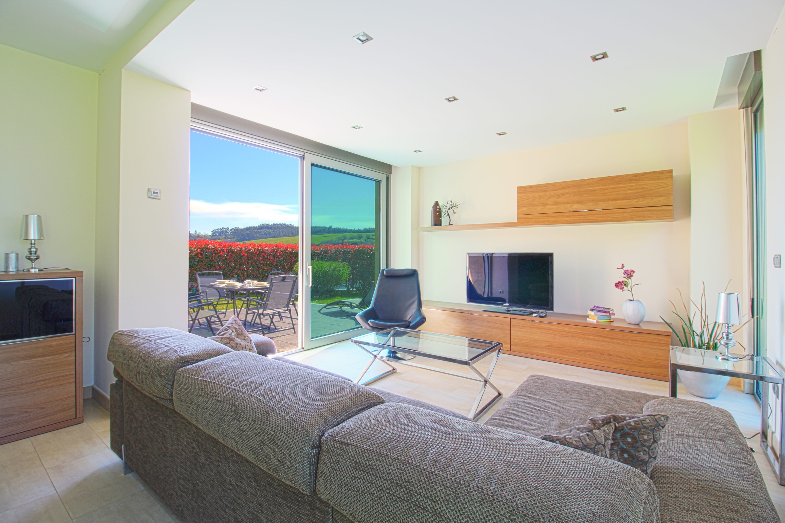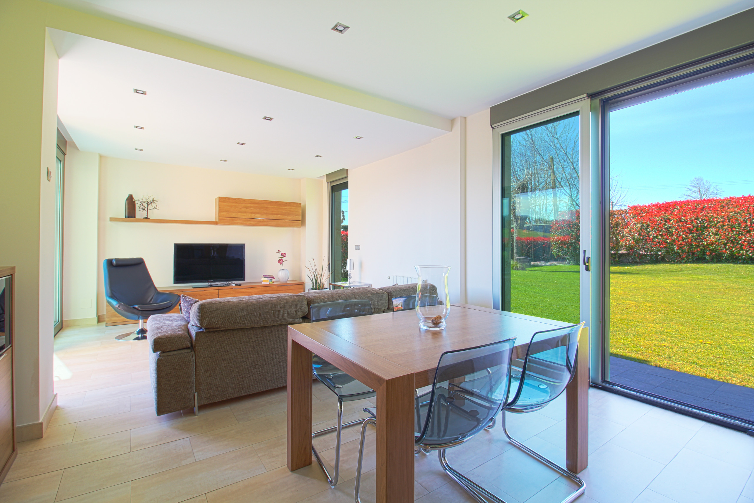 El Chalet de Lola ofrece un luminoso y funcional salón comedor al lado de la cocina, creando un ambiente acogedor. Con tres amplios dormitorios y baños completos, cada espacio está diseñado para máximo confort. El jardín y terraza son ideales para relajarse al aire libre. Incluye parking privado para residentes. Con diseño contemporáneo y amplios espacios, es perfecto para vacaciones en familia y amigos.