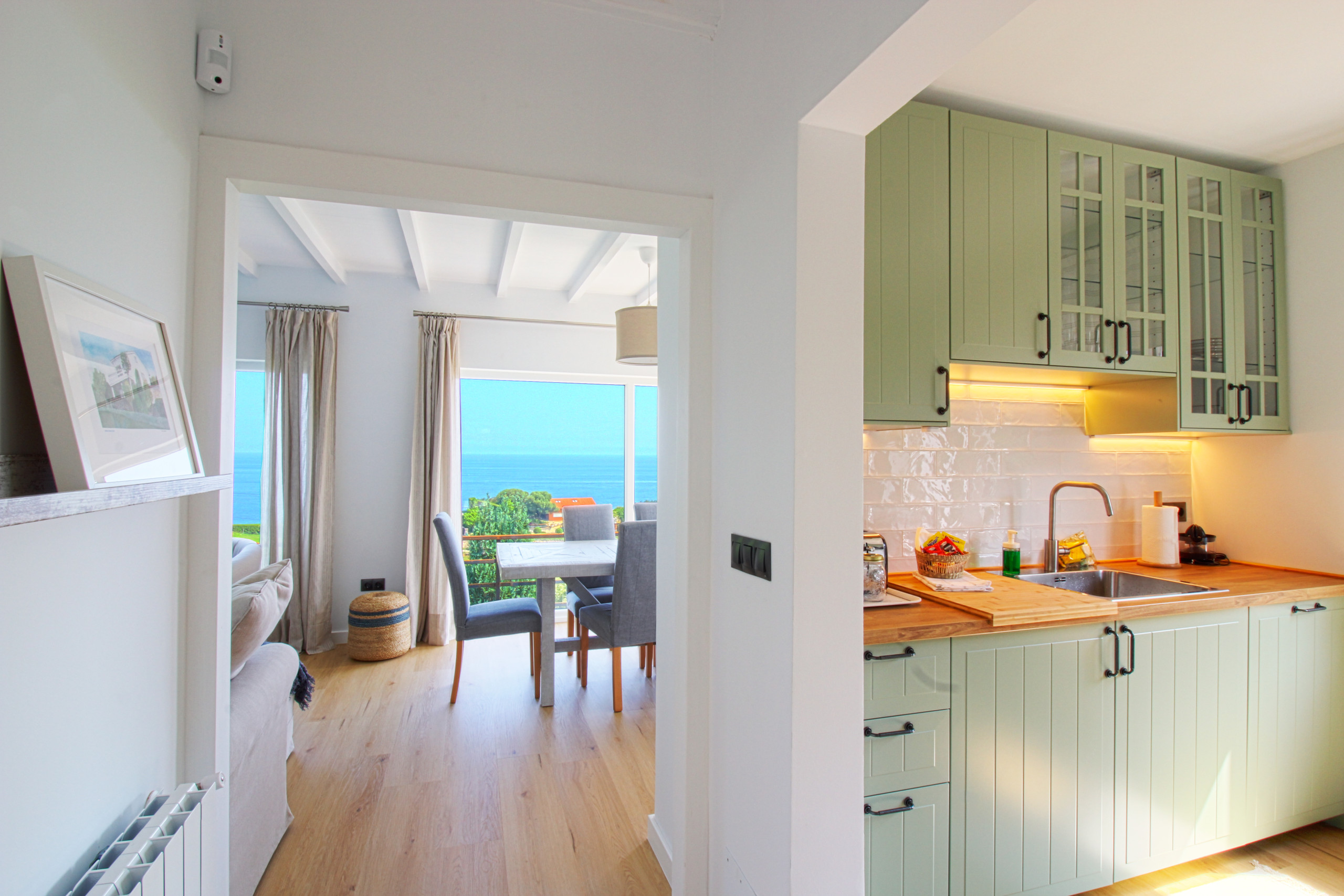 Apartamento moderno y luminoso, recién reformado, con cocina completa, salón-comedor ofreciendo impresionantes vistas panorámicas al mar cantábrico, dos dormitorios, baño completo con bañera, aseo, dos terrazas y amplio jardín para disfrutar con amigos y familiares.